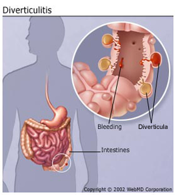 There are two main types of diverticular disease -- diverticulitis and diverticular bleeding.